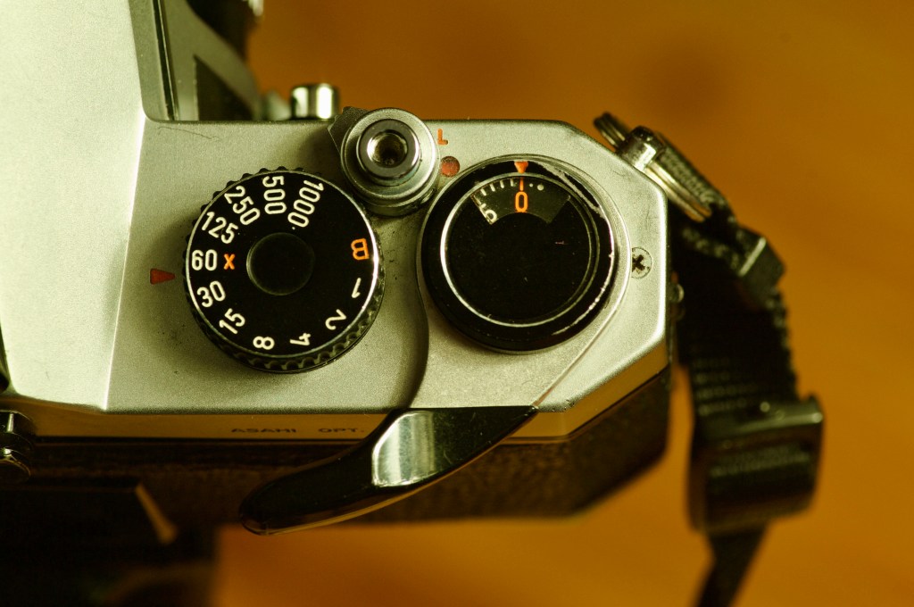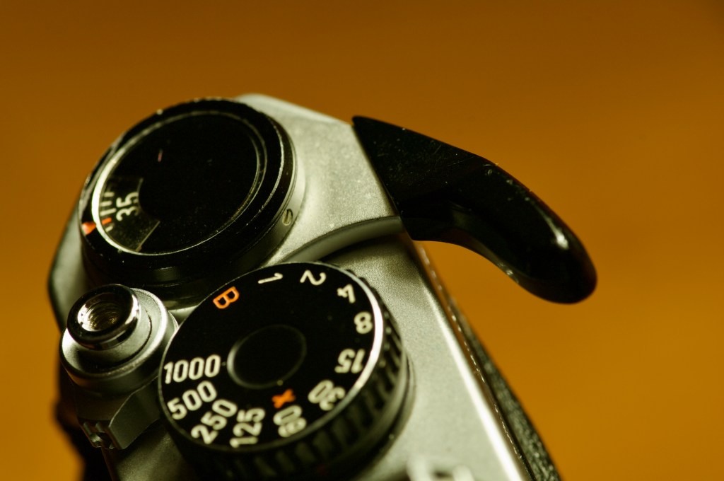 The first item is the meter switch. To activate the meter, you have to pull the film advance lever to the ‘pre-advance angle’ and press the shutter button half-way. This was a battery-saving feature and served as an on/off switch without the need for a separate switch for that purpose. Sounds like an ingenious design right? Problem is that I don’t normally shoot with the film advance pulled out unless I plan on firing off several frames in succession. This tripped me up several times when I would half-press the shutter and the meter didn’t respond. By the time that I realized that the advance lever wasn’t pulled out, the moment had passed and my shot was lost. A great design idea but unfortunately one that I struggled to grow accustomed to.